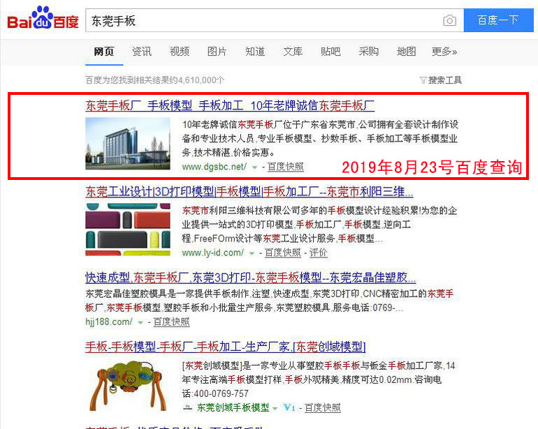 手板加工 百度(PC)自然排名第1名